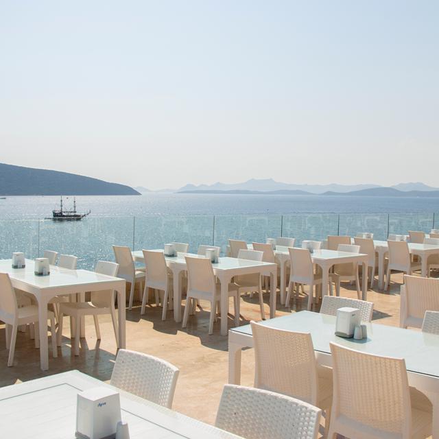 Schitterend uitzicht over Akbuk;Aan het zandstrand;3 waterglijbanen;Ruim opgezet sfeervol hotel