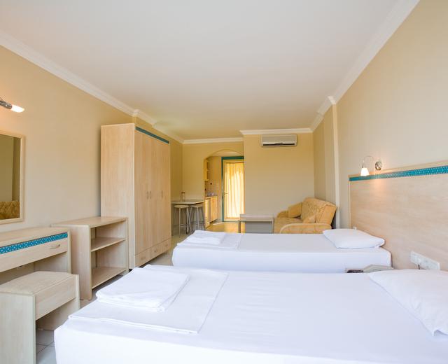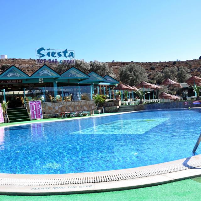 Appartementen Siesta Beach bestaat uit verschillende gebouwen, die op speelse wijze bij elkaar staan. Rondom en tegen de gebouwen aan zorgt de groene en fleurige begroeiing voor het echte vakantie gevoel! Tel hier de ligging aan het strand bij op en alle ingrediënten voor een heerlijke vakantie zijn aanwezig. De verzorgde appartementen bieden je de optimale comfort en vrijheid om te gaan en staan waar je maar wilt. Dat wordt optimaal genieten onder de Turkse zon!