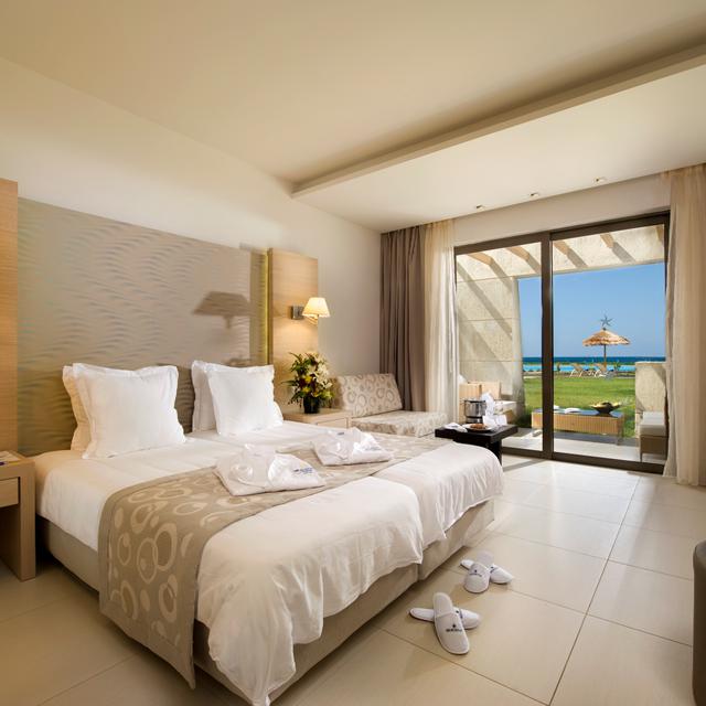 Hotel Astir Odysseus staat voor topkwaliteit en uitstekende service. Met het hele gezin of lekker met z'n tweeën kun je hier genieten van een heerlijke vakantie. Er zijn verschillende type kamers te reserveren en de inrichting is een combinatie van luxe en comfortabele functionaliteit. Het hotel staat bekend om de vriendelijke service en de uitgebreide all inclusive buffetten, met voor ieder wat wils elke dag weer, reserveer je dit erbij dan is het maximaal genieten. Ook de ligging aan het mooie zandstrand is perfect te noemen en houd je liever van zwemmen in het zwembad, dan zijn er maar liefst twee baden met fijne ligbedjes eromheen. En heb je dorst? Via een app op je telefoon of tablet bestel je zo een drankje van de bar. Dit is nou op en top vakantie vieren!