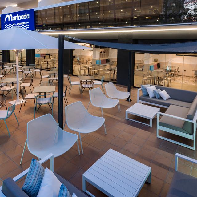 Ponient Appartementen Marinada heeft vele faciliteiten voor een heerlijke vakantie in Salou. De studios zijn comfortabel ingericht en perfect om in uit te rusten na een zonnige dag. Geniet lekker van een drankje bij de bar en ontspan op een ligbedje. Kinderen maken gemakkelijk vriendjes bij de miniclub in het hotelgedeelte van Marinada (in het hoogseizoen).